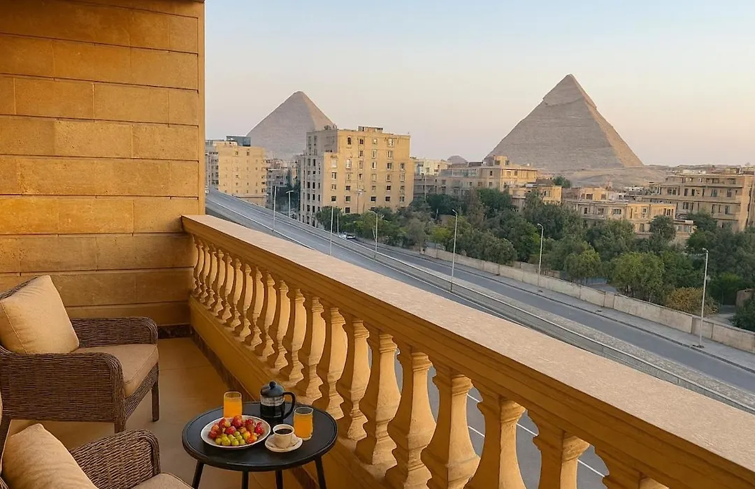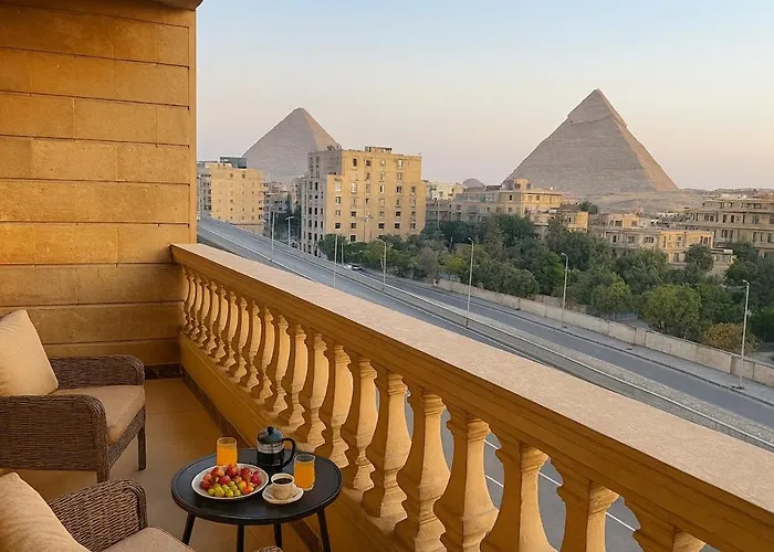 Two Icons One Balcony Pyramids And Grand Museum View Apartment Cairo is nestled in the Giza district, nearly 25 minutes' walk from Great Pyramid of Giza.